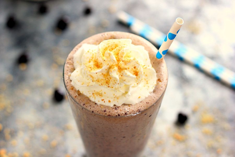 This Caramel Blueberry Milkshake is filled with sweet vanilla bean ice cream, rich caramel, and Dark Chocolate Blueberries from BROOKSIDE. It’s creamy, delicious, and the perfect frozen treat to satisfy your ice cream cravings! This Caramel Blueberry Pie Milkshake combines hints of caramel and blueberries that create the perfect flavor combination. The Dark Chocolate Blueberries provide a subtle blueberry flavor, along with rich bursts of chocolate.