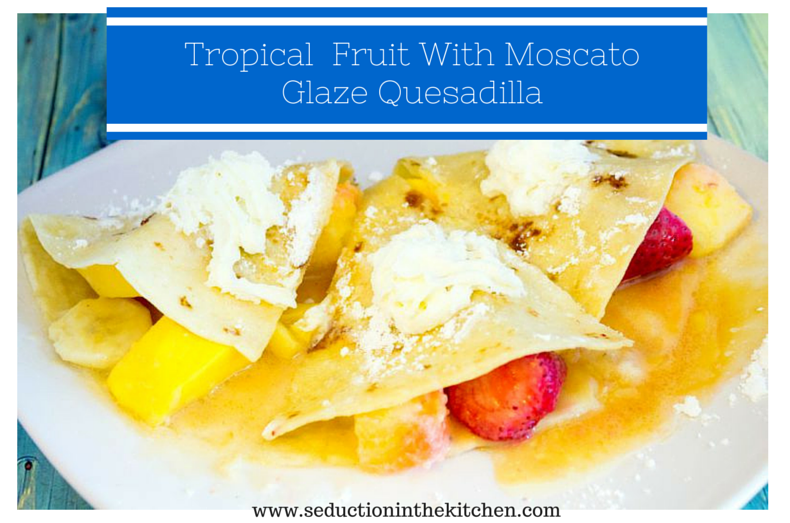 Time to relax at the pool and enjoy a fun quesadilla with tropical fruit with a moscato wine glaze. A recipe from Seduction in the Kitchen.